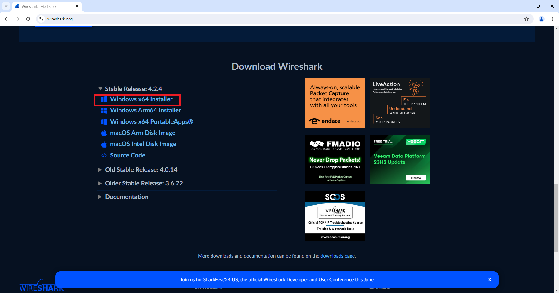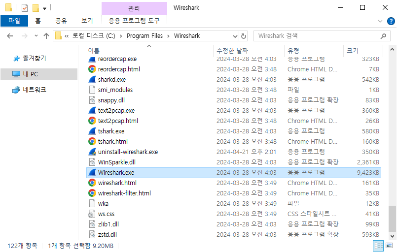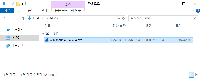 4. 다운받은 Wireshark-4.2.4-x64.exe 파일을 실행합니다.