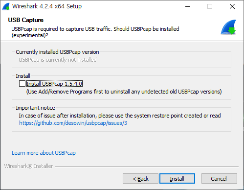 ( USBPcap 를 설치하기 위한 확인 내용입니다.